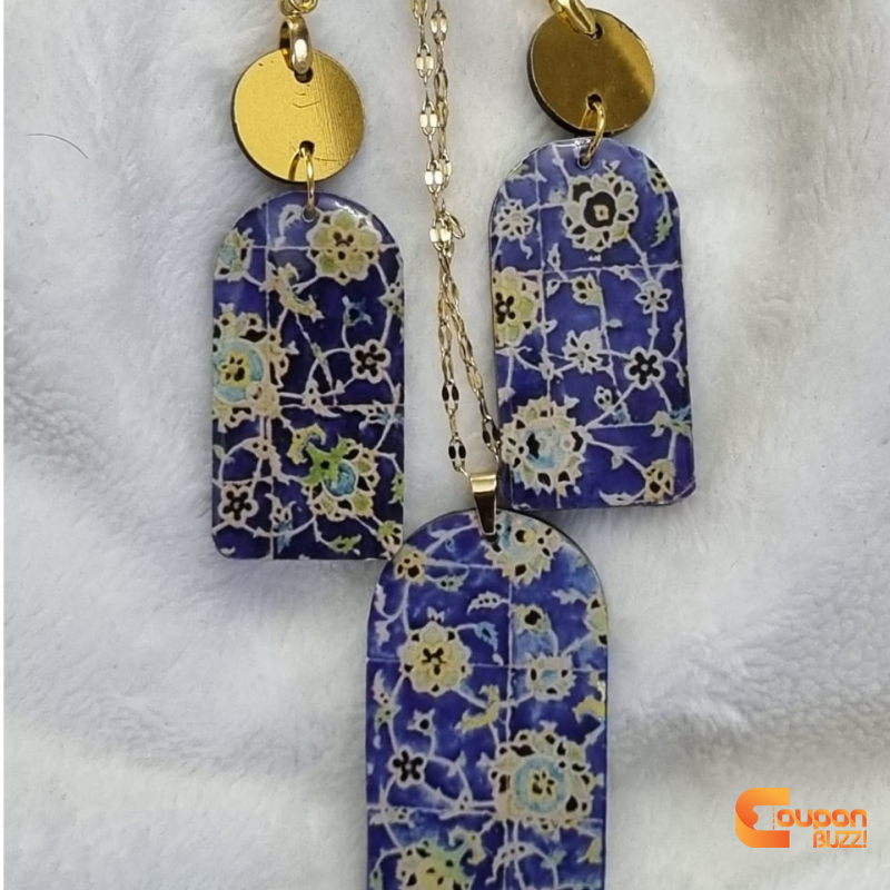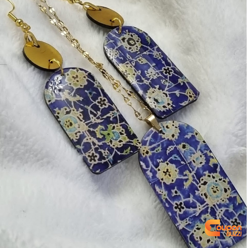 ست گوشواره و گردنبند طرح کاشیکاری ایرانی 1