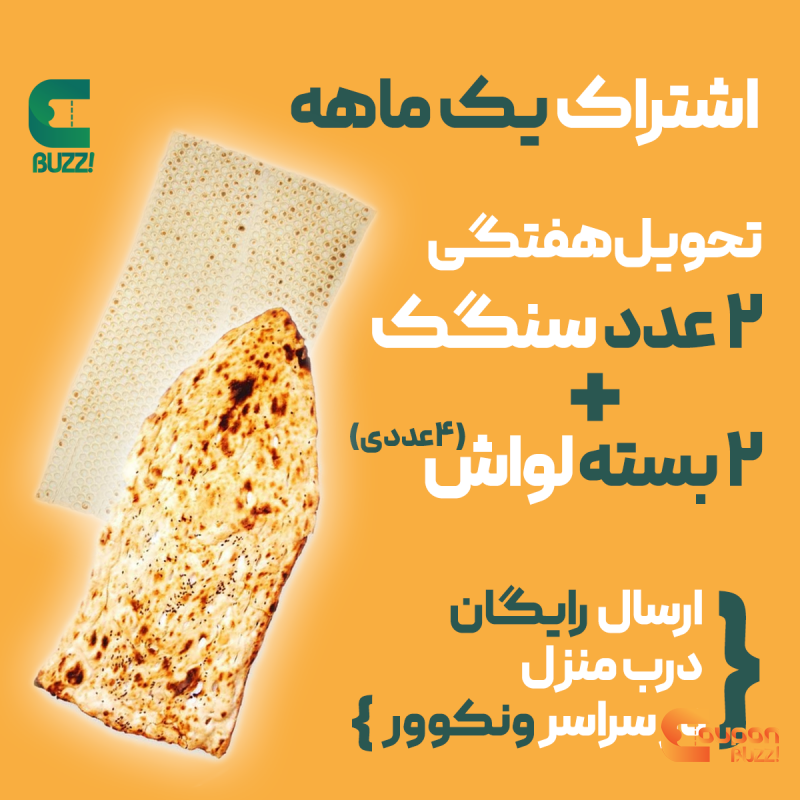 با این اشتراک ۱ ماهه، هر هفته ۲ عدد نان سنگک + ۲ بسته (۴عددی) نان لواش تازه و خوشعطر مستقیماً درب منزل شما تحویل داده میشود.