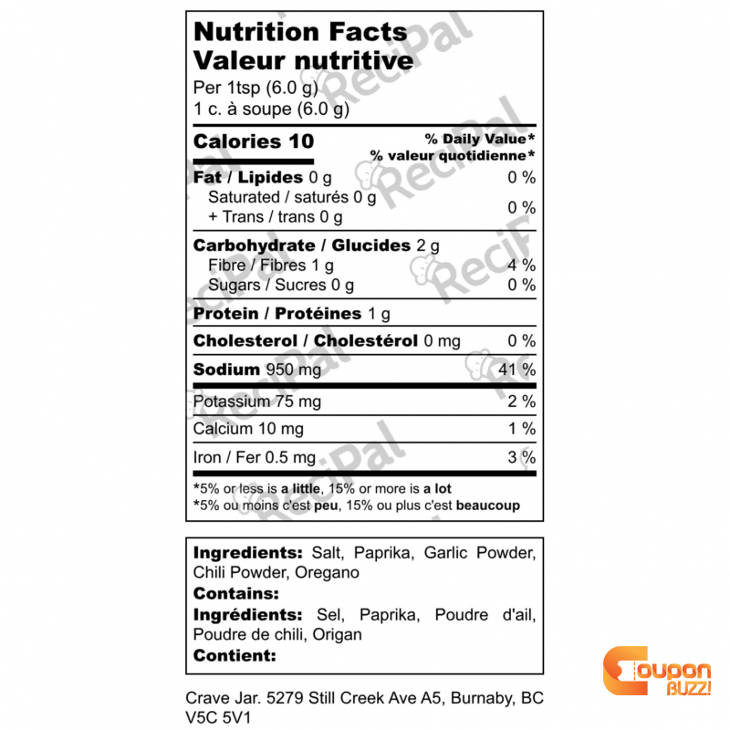 پاپریکای دودی، گرانول سیر، نمک، پنیر پارمزان، پونه، فلفل قرمز (توجه: این محصول تند نیست)