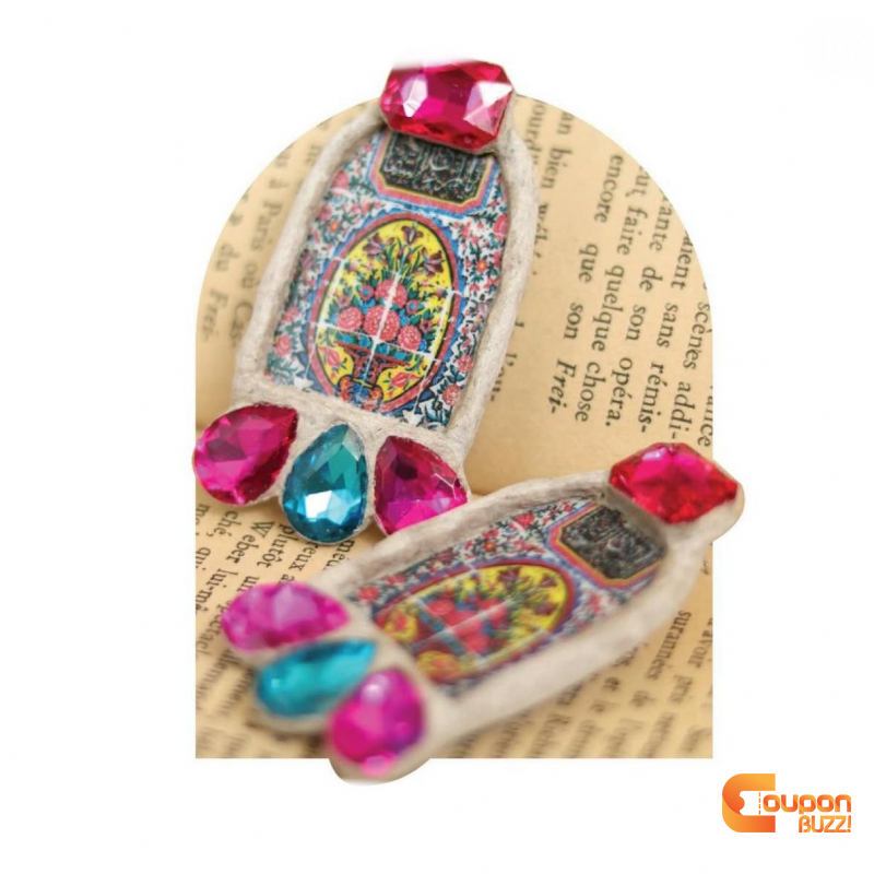 ترکیبی از پاپیه ماشه و نگین های آبی و صورتی