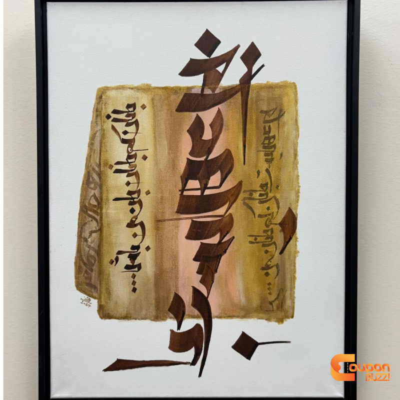 تابلو نقاشی با شعر مرا عهدیست با جانان (مولانا) در ابعاد ۲۴ در ۱۸ اینچ و با مرکب ضد آب و اکریلیک.