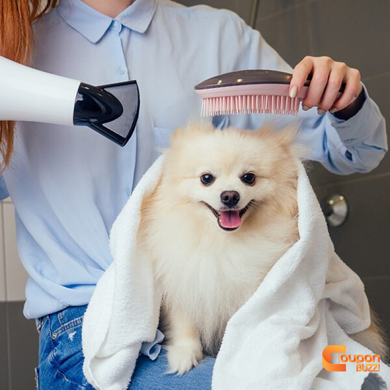 این کوپن شامل سرویس کامل حمام، برس‌کشی، اصلاح کامل موهای بدن و صورت، کوتاه‌کردن ناخن‌ها، اصلاح کف پنجه‌ها و ناحیه بهداشتی حیوان خانگی شما می باشد.