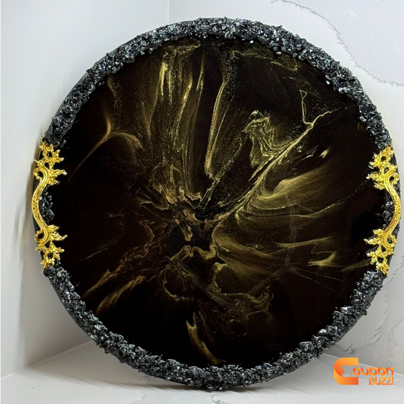 سینی رزینی دستساز طرح مرمر ، دور سنگ ، قطر ۴۰ سانت.